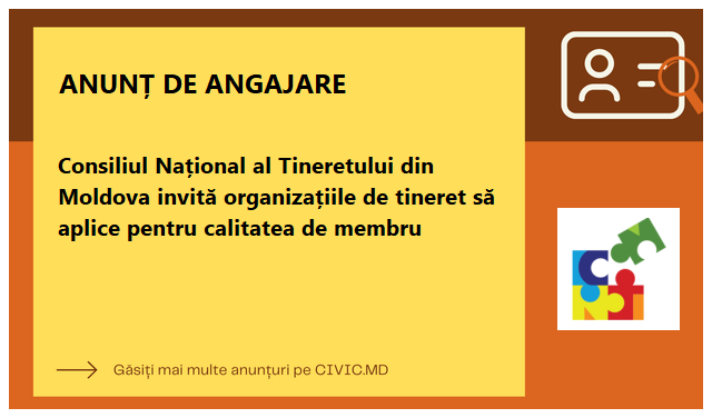 Consiliul Național al Tineretului din Moldova invită organizațiile de tineret să aplice pentru calitatea de membru