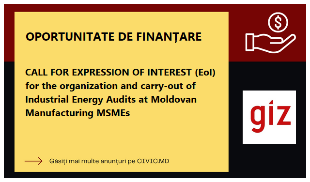 CALL FOR EXPRESSION OF INTEREST (EoI) for the organization and carry-out of Industrial Energy Audits at Moldovan Manufacturing MSMEs