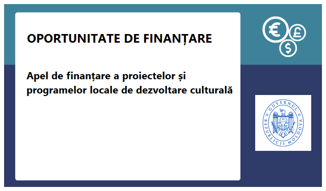 Instituția Publică Oficiul Național de Dezvoltare a Culturii lansează apelul de finanțare a proiectelor și programelor locale de dezvoltare culturală, destinat instituțiilor culturale fondate de autoritățile publice locale de nivelul I și II.