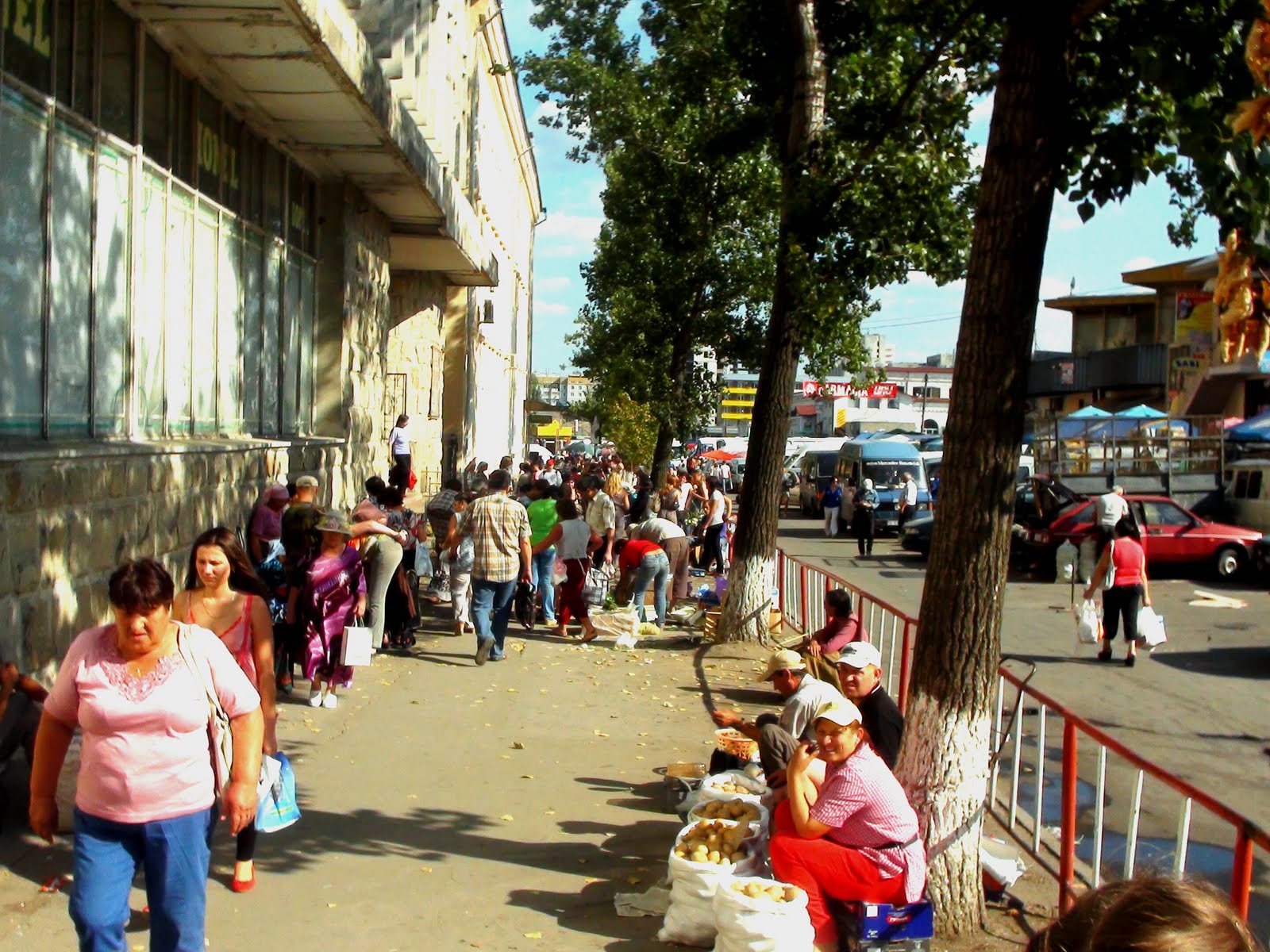 Lângă Piaţa Centrală din Chişinău. Din anii '90 până în prezent sute de oameni comercializeză zilnic pe marginea străzii. De parcă timpul s-a oprit pe loc. |