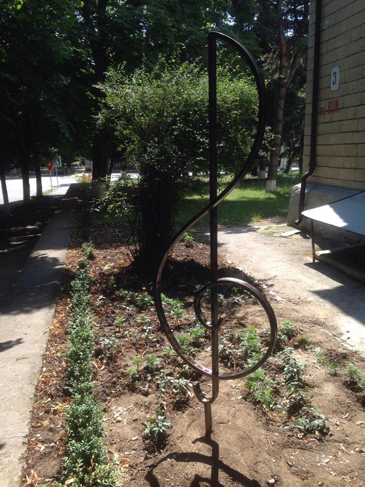 Dar, până la proiectul propriu-zis Ilie, așa e prenumele tânărului, a discutat și s-a consultat cu administrația Școlii de Muzică cu ceea ce este primordial de a se rezolva în insitituție. În final, s-a decis să fie amenajată grădina Școlii de Muzică cu plante decorative și amplasarea simbolului muzicii „Cheița Sol” și logo-ul insitituției - „Lira”, ele fiind realizate din fier forjat.