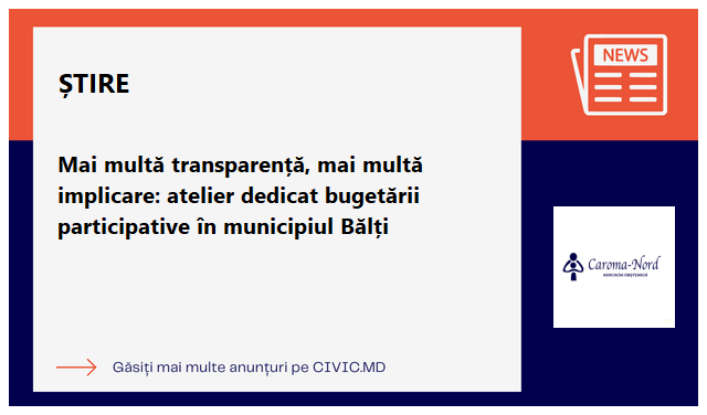 Mai multă transparență, mai multă implicare: atelier dedicat bugetării participative în municipiul Bălți