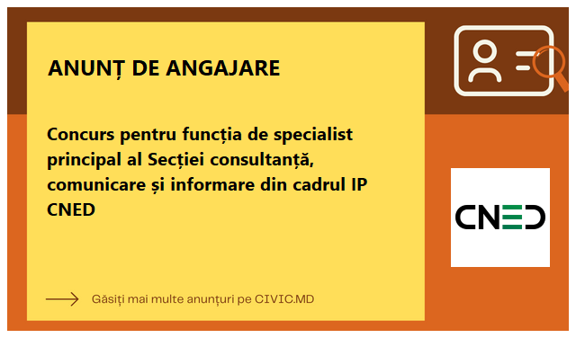 Concurs pentru funcția de specialist principal al Secției consultanță, comunicare și informare din cadrul IP CNED